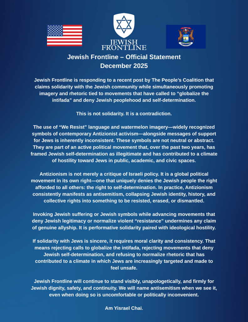 Jewish Frontline is proud to publicly commend Principal Ché Carter of Huron High School for his thoughtful, responsive, and student-centered leadership in addressing recent incidents that impacted members of the Jewish student community.