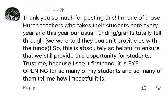 Thanks to the generosity of our community, we have successfully raised the funds needed to support the Holocaust education field trip for Huron High School students.